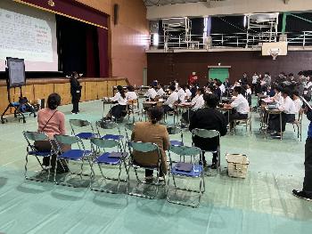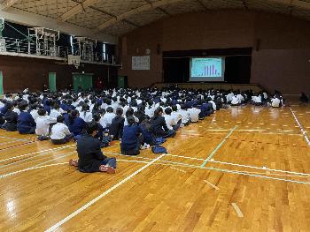 シリアスな内容となりましたが、真剣に聞き入っている生徒の様子を見て、「生命や、生きることの意味を考える一つのきっかけになっていればいいな」と考えていました。きっとこれだけの人数がいるので、この病気が身近な生徒もいただろうと思います。事前に「この授業は受けたくなかったら受けなくていいよ」と伝えてはいましたが、多くの生徒が「知ること」を選んだようでした。