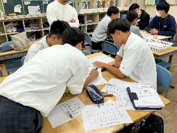 授業後に、生徒の一人から「え、終わり?続きを最後までやりたい!!」と思わず声が上がりました。主体的に課題と向き合ってくれた結果なのだろうと、2年生有志の皆さんの気持ちに胸が熱くなりました。