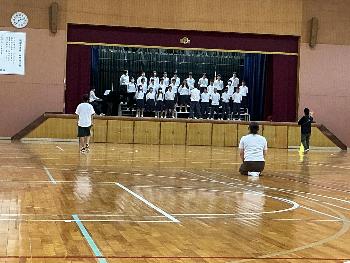 各クラスに平等に与えられている体育館練習。限られた時間の中で、入退場や、コンクールのお作法など多くのことを確認していかなければなりません。まずはそれらのことを丁寧に確認しながら1回とおしてみます。