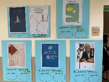振り返って反対側の壁には、学年担任のおすすめ本が張り出されていました(背景青の掲示)。少しテイストの違うラインナップに生徒の興味が刺激されたのでしょうか。「読みたい」のシールが貼られていました。