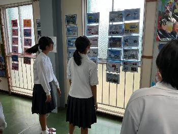 国語科、英語科、音楽科、美術科といった各教科で作成した作品も廊下中に展示されました。俳句や英作文や壁新聞でのプレゼンテーション、インテリア小物や書道作品に至るまで、授業中や夏休みの宿題で取り組んだ成果を多くの方にご鑑賞いただきました。
