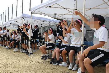 また、PTA会費より、熱中症対策として生徒用テントとスポーツドリンクをご用意いただきました。当日は保護者の皆さまや、地域のご来賓の皆さまにも多数ご観覧いただき、大きなご声援をいただきました。
