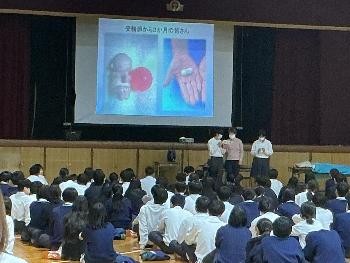 6時間目に、高槻赤十字病院から看護師さん等の講師をお招きして、1・2年生を対象としたがん教育を実施しました。