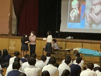 午後から助産師さんをお招きし3年生にむけてお話をしていただきました。