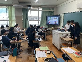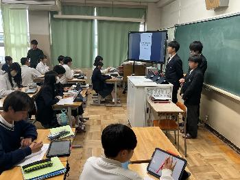 本ブログ11月14日公開研究授業時でお伝えしていた授業の内容について、いよいよまとめの時期に入り、各クラスでグループごとのプレゼンが始まりました。