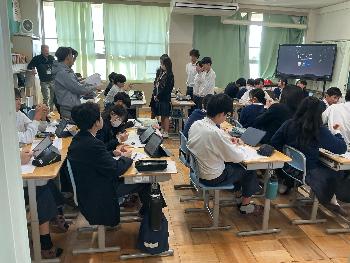 生徒たちは突然の来訪者に驚きながら、しかし積極的にプレゼンに臨み、自分たちの研究の成果を発表していました。新しい授業スタイルに戸惑いもあるようですが、アジャストしようと頑張っている様子がうかがえました。