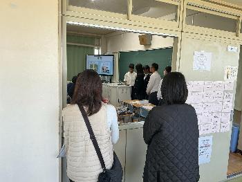 さまざまな高校と交流したことや校外の施設でのフィールドワークの成果か、ハイレベルな内容の作品がずらりと並びました。でき上った作品を見て思わず売りもんみたいやなと感想を漏らしてしまう生徒もいたそうです。各部がこの日に向けて準備してきた軌跡が感じられる、青春をかけた逸品に思わず足が止まり、渋滞ができてしまうほど見入っている各教室の様子です。