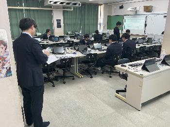 東京本社政治部の記者さんが、まずは別室で3年生の生徒のインタビューの後、実際にコンピューター室で活動している様子を熱心に取材されました。