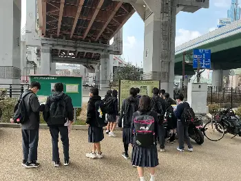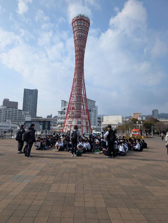 第2学年では総合的な学習の時間を使って防災学習に取り組んできました。それらの学習のまとめと、来年の修学旅行における班活動の事前練習を目的として、震災から復興した街、神戸を舞台に探究活動を行いました。