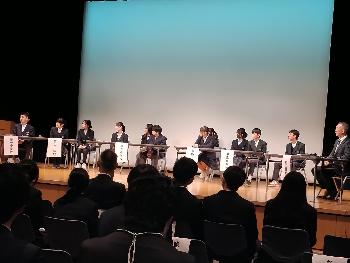摂津市教育フォーラムに本校の生徒会執行部が登壇し、日常の取組みを発表しました。