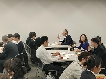 フォーラム終了後は、摂津市の教育委員の皆さまと軽食を囲んで座談会が催されました。話が盛り上がらない時のため、我々教員もそばで控えていましたが、それもいらぬ心配で、思い思いに意見を聞いてもらい、また、教育委員の方からの問いかけに堂々と答えていました。