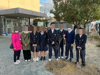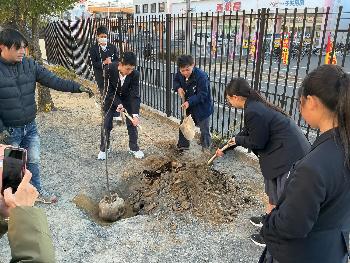 本校は令和11年度に創立70周年を迎えます。節目の年にむけて、今年度は桜の苗木をご寄贈いただき、生徒会執行部の皆さんとともに植樹しました。