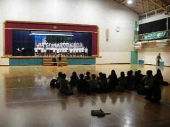 校歌斉唱の練習です。頑張って歌おう!