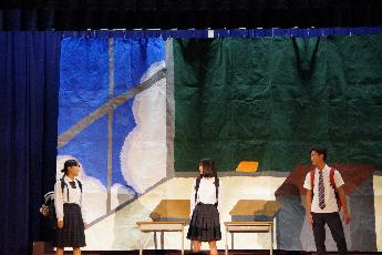 背景係は下書きをして色を塗って、人数は少ないですが頑張っています。演者はそれぞれセリフを覚えていて大変そうですが頑張っています。