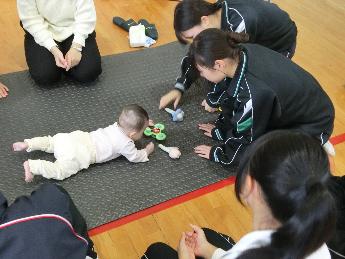 赤ちゃんとふれあい、赤ちゃんの保育者の方と談話したり質問をしたりしました。赤ちゃんとは保育者が持ってきたおもちゃで遊んだり、三年生たちが以前作った絵本を読み聞かせたりして、赤ちゃんたちの好きなことをして遊びました。中にはかけっこをする子もいてすごく元気をもらいました。