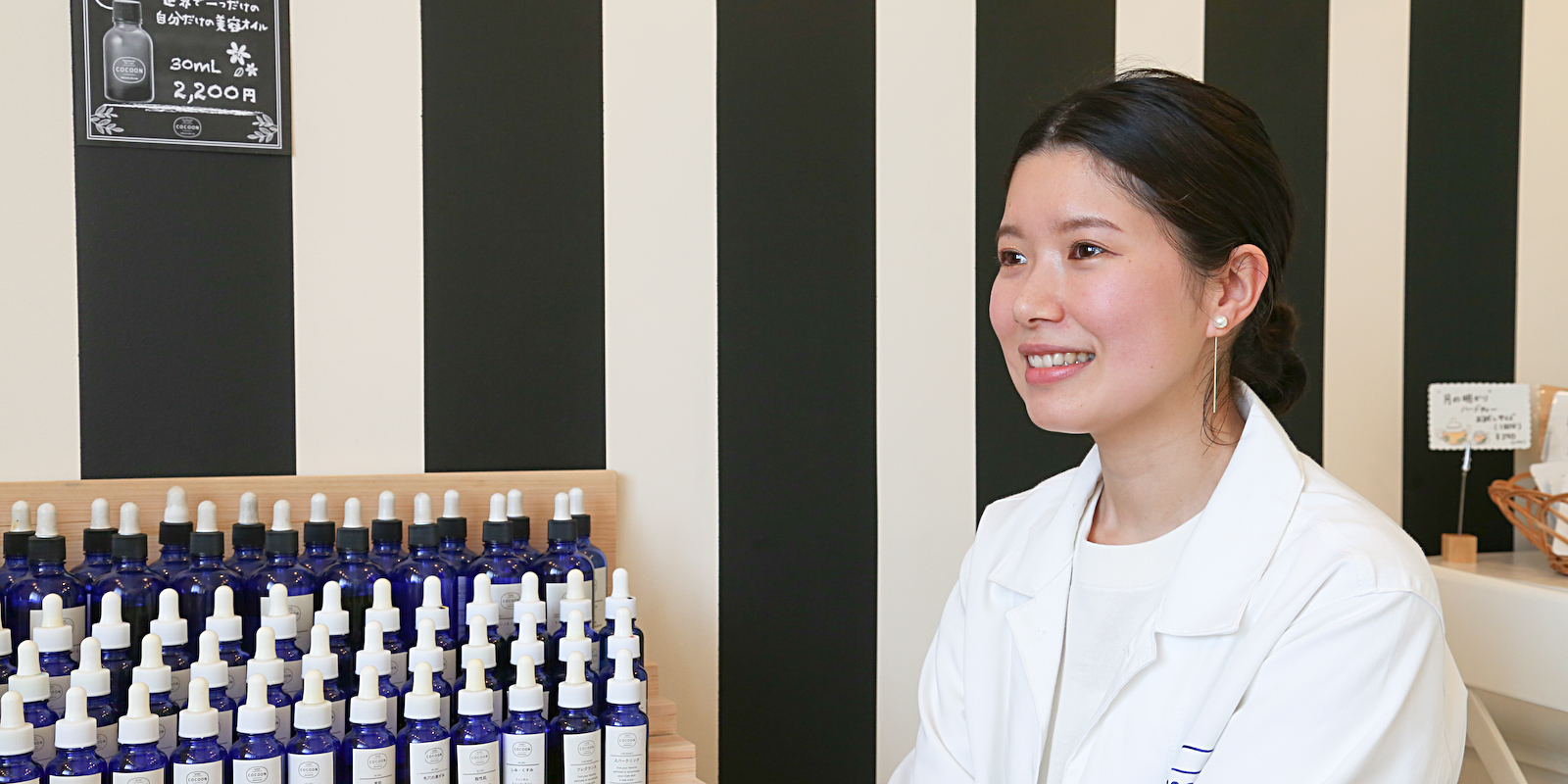 中学2年生ぐらいから高校1年生まで、ひどいニキビに悩んでいました。様々な化粧水や洗顔フォームを試したのですが、一向に良くならず、どんどんひどくなっていきました。思春期でしたので、周囲に自分の顔を見られるような気がするし、何で私だけ…。見られないように、気付かれないようにずっと下を見て歩いていました。そんな私を見かねて、母が自然の素材を活かした石鹸を手作り。色々な素材を試しながら、少しずつ肌質が改善していったのです。肌質が改善されると周りの目が少しずつ気にならなくなりました。そんな石鹸がクチコミで広がり、気がつくと母がお店を構えることになりました。