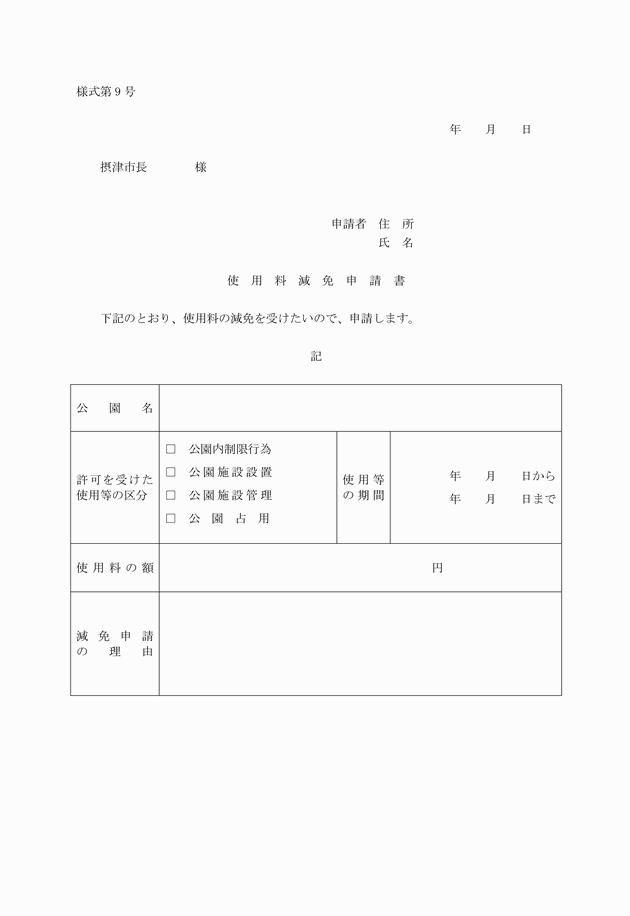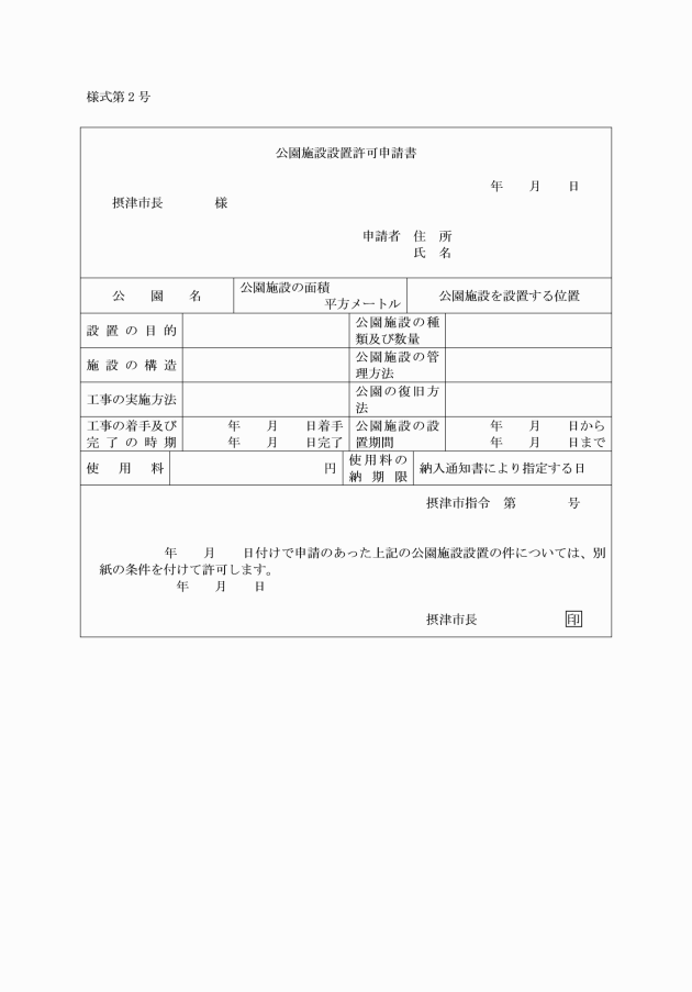 ア 同項第1号の場合 公園施設設置許可申請書(様式第2号)