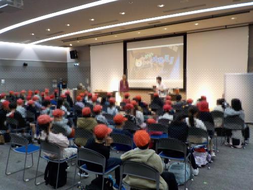 今日は1年生が集まって、図書委員さんからの読み聞かせを聞きました。クイズの答えを探しながら、しっかりと聞き、元気よく答えを発表してくれました。