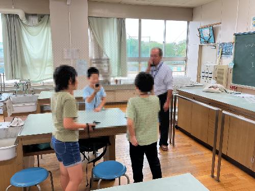 「三宅柳田の科学室」では、無線について学びました!トランシーバーで「こちら〇〇です、どうぞ」「了解、どうぞ」とやり取りを楽しんでいます。