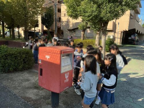 2年生は、先日お世話になった摂津郵便局へ、お礼のはがきを書きました。そして、学校の隣にあるポストへ。