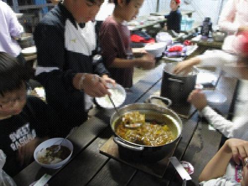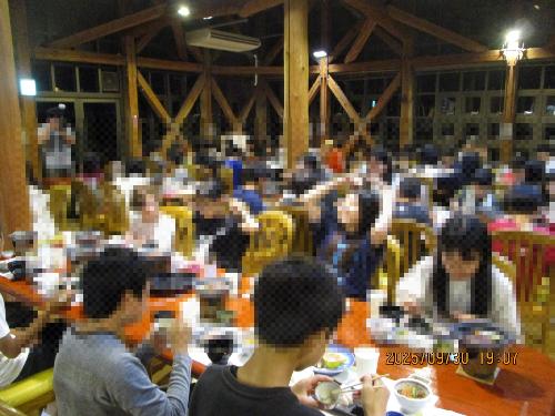 みんなでわいわい夕食。ご飯をたくさんおかわりしていました。