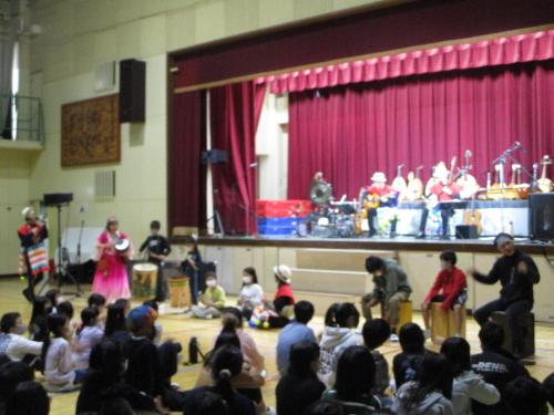 児童が実際に演奏に参加させていただける場面もあり、みんなで楽しみました。音楽工房の皆さん、ありがとうございました。