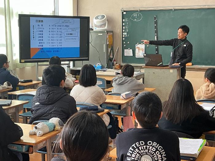 一中の先生に来ていただきました 更新日:2026年01月22日 中学校オリエンテーション 6年生の授業日はあと30数日となりました。そのようななか、先日第一中学校の先生方に来校いただき、6年生の各クラスで中学校生活についてのオリエンテーションを行っていただきました。 いつもよりも背筋の伸びた6年生たち。真剣に話を聞いていました。そして、中学校生活のイメージを豊かにし、安心感を得た様子に見えました。 残りの小学校生活を大切に過ごし、中学校生活に向けてしっかりと準備をしてほしいですね。