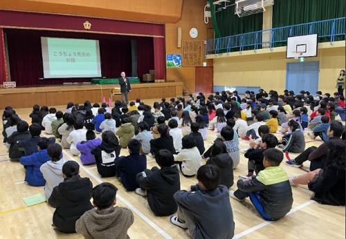 校長先生のお話を聞いている子どもたちの姿勢が素晴らしいです。座っていますが、背筋が伸び、真剣にお話を聞いていることがよくわかります。