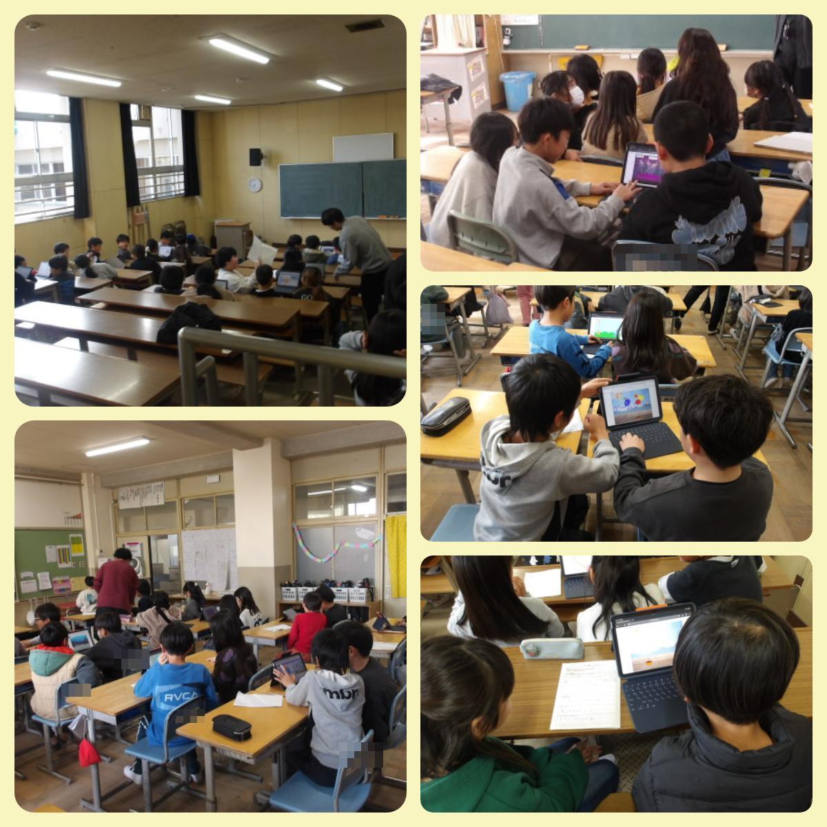 4年生が、同じ中学校区にある鳥飼西小学校の4年生と、2回目の交流活動を行いました。今回は、鳥飼北小学校の子どもたちがプログラミングの学習で作成したゲームを通して交流しました。