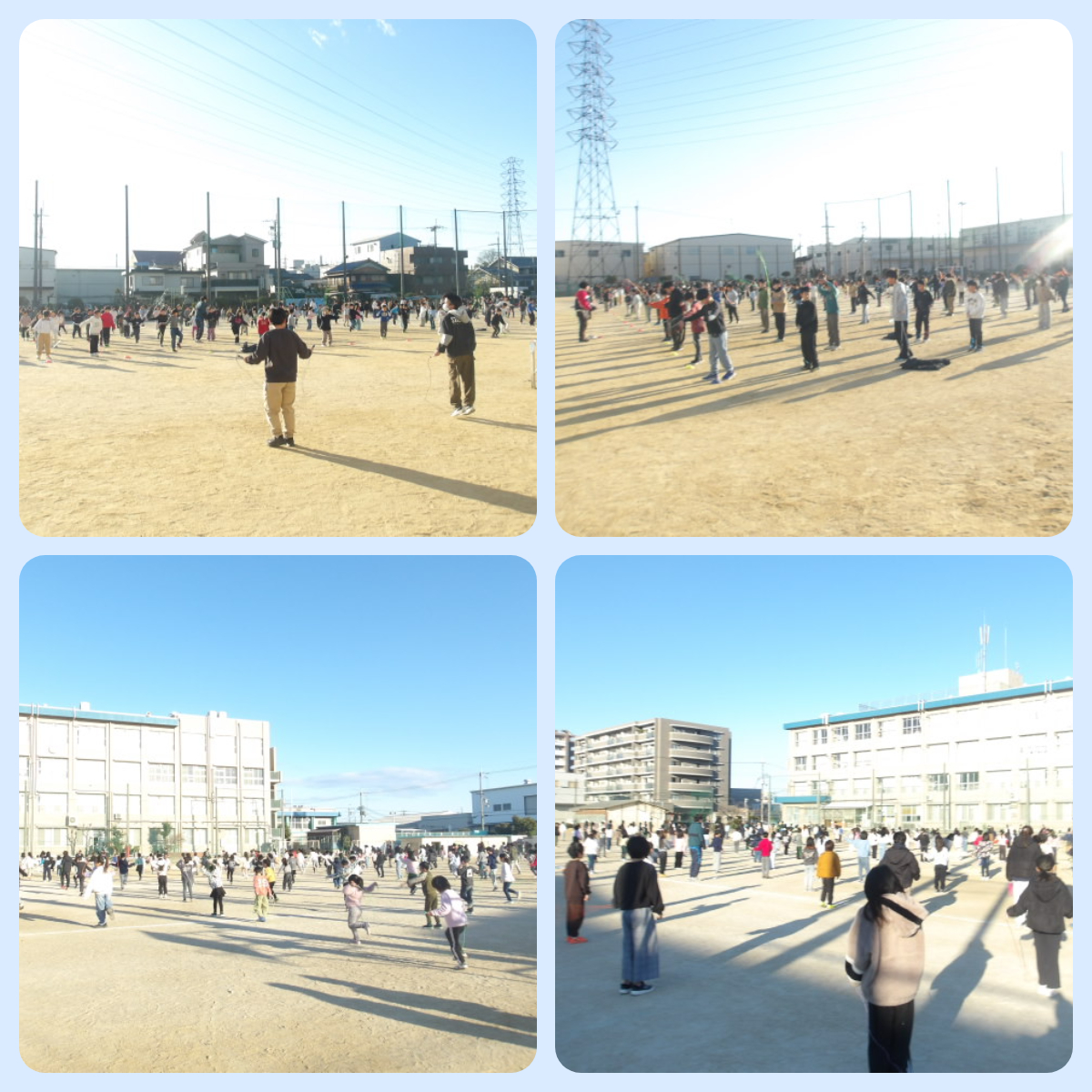 今季最強の寒波の中での実施となりましたが、子どもたちは朝一番から元気に運動場へ集まり、寒さに負けず、あきらめずになわとびに取り組みました。