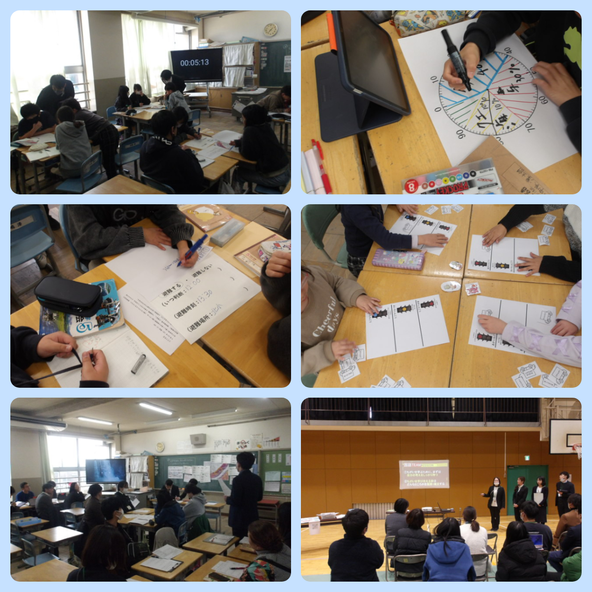 訓練後は、各学級で担任とともに、行動のよかった点や改善点について、しっかりと振り返る時間をもちました。