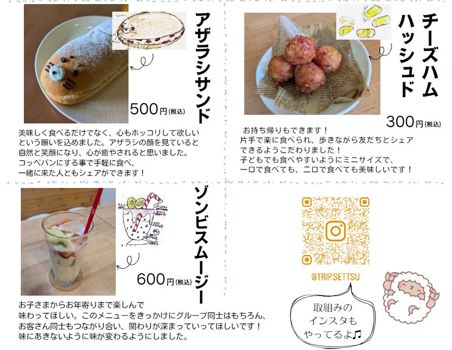 最終プレゼンテーションで選ばれた5チームのメニューは、地域のお店「cafe Sheep」さんのご協力のもと、実際にお店で提供されています。