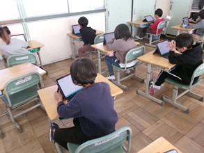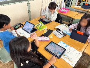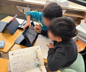 1年生は国語で「くじらぐも」を学習しています。このセリフは誰のセリフだろう!?と同じグループの友達と話し合いながら、タブレットを使って色分けしました。友達に教えたり、「一緒や!」「そこは、子どものセリフじゃない?」などいろいろ話し合いながら、進めていました!一緒に学ぶことで、勉強が楽しく感じてほしいなと思います。