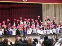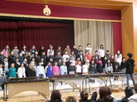 3年2組は連合音楽会に出場しました。客席では緊張しているのかと思いましたがリラックスして自然体ですわっていました。本番での歌声はとてもよかったです。校内音楽会で聞いてください。