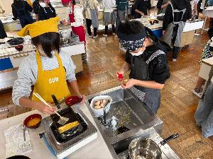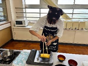 家庭科の学習で、調理実習をしました。今回のメニューは「卵焼き」と「ジャーマンポテト」です。卵焼きを作ることが初めての子もいましたが、班で協力して時間内に片付けまでできました。美味しく作ることができましたね!!
