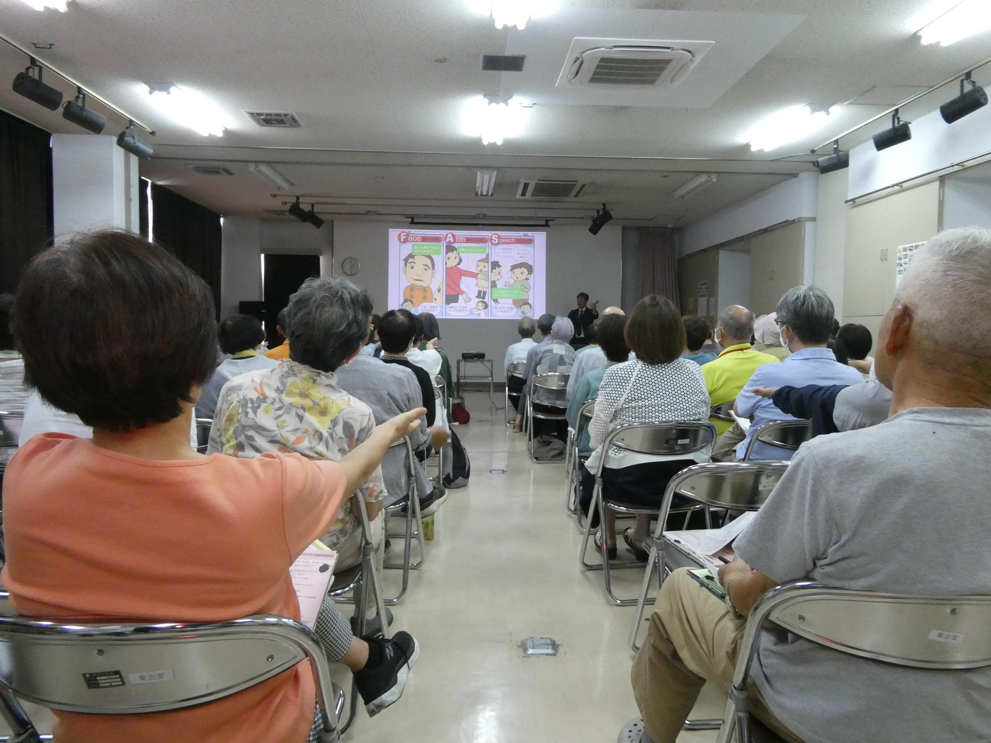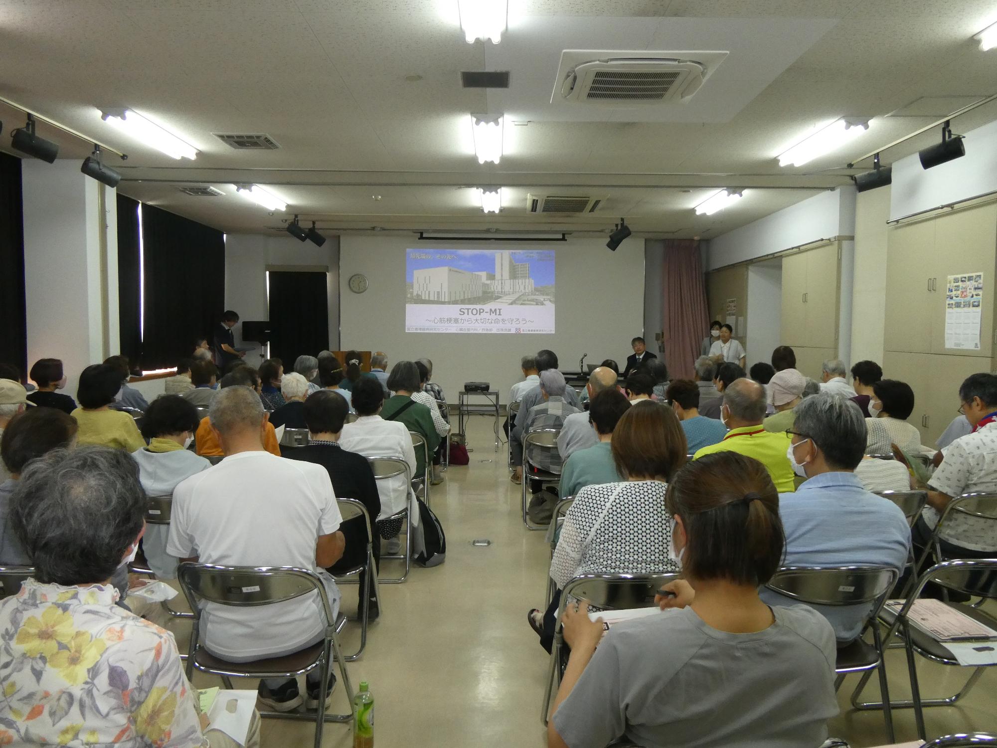 参加者は、講演中、先生方のご講を熱心に聴講されていました。講演後のアンケートでは、「ためになった。これからも健康に気を付けていきたい」「よくわかった。ぜひ別の地区でも開催してほしい」などの感想をいただき、市民の皆様の、循環器病に関する意識の高さが伺えました。