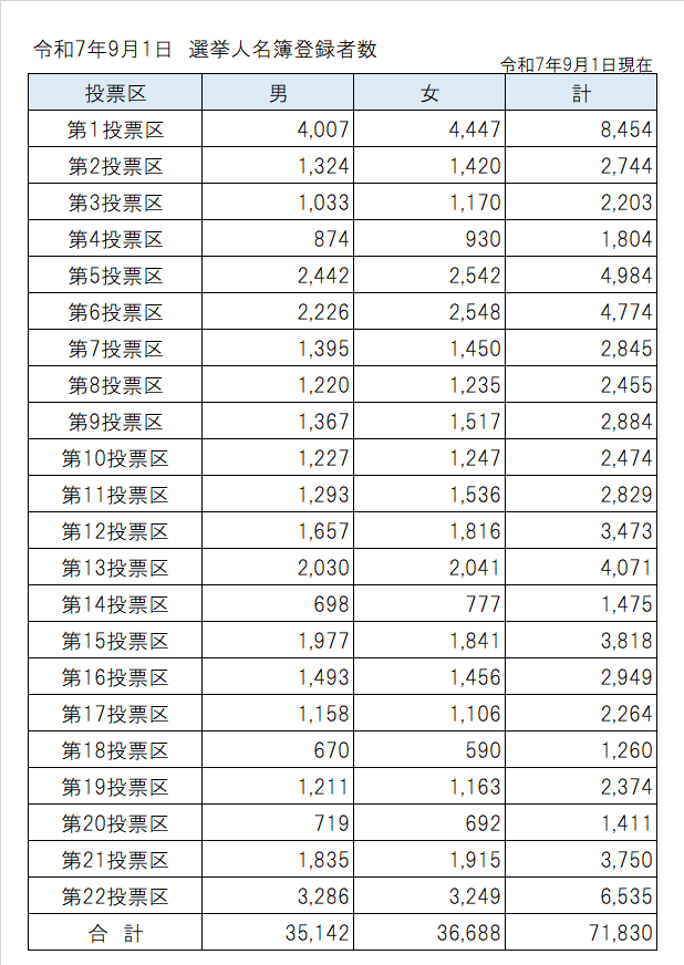 摂津市の選挙人名簿登録者数