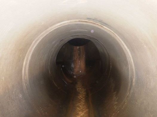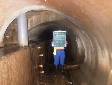 優先実施個所499mの管きょ内調査を実施(調査員が管きょに入り調査)