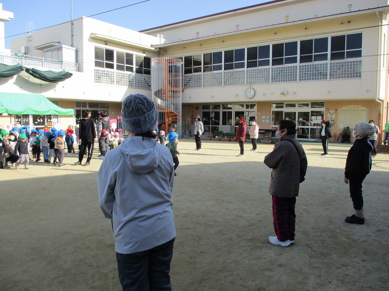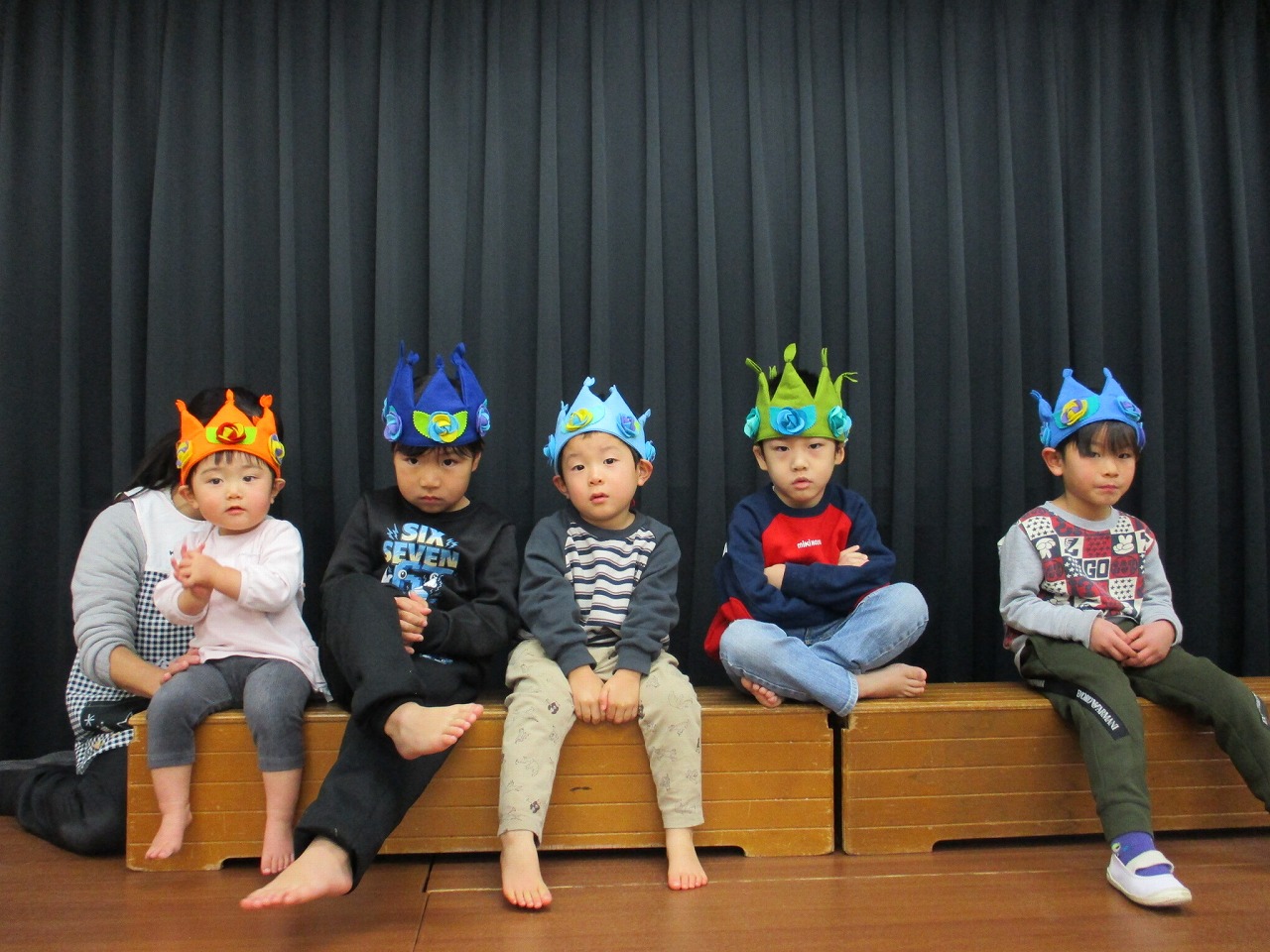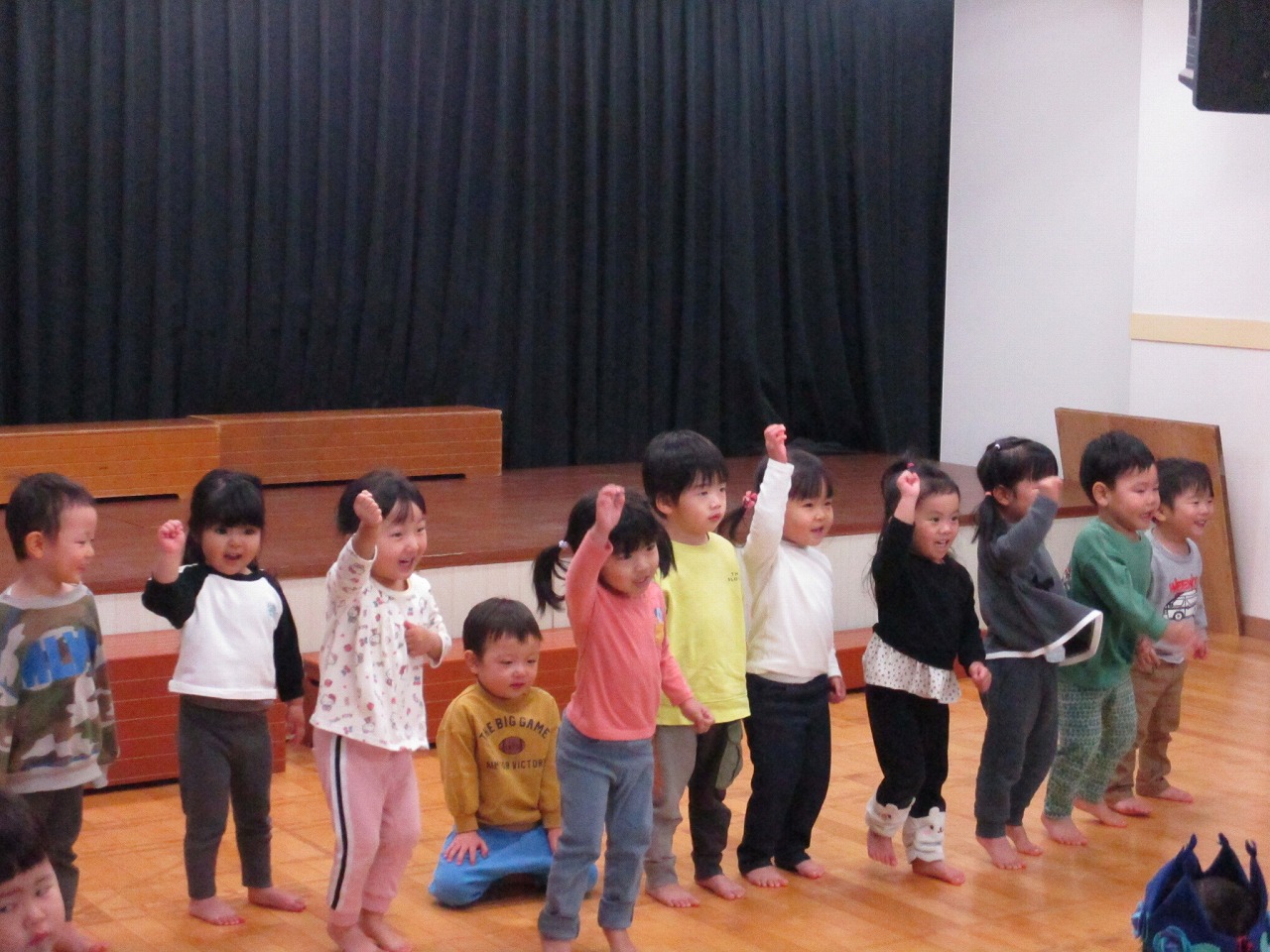 ホールにみんなで集まって1月生まれのお友だちのお祝いをしました。