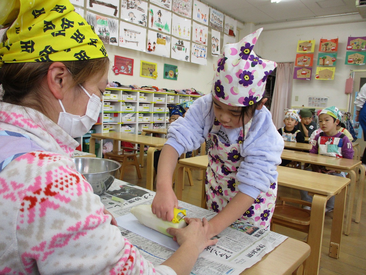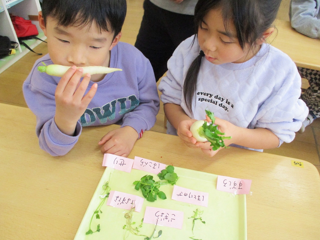 園で採れた大根を使って5歳児クラスでクッキングをしました。