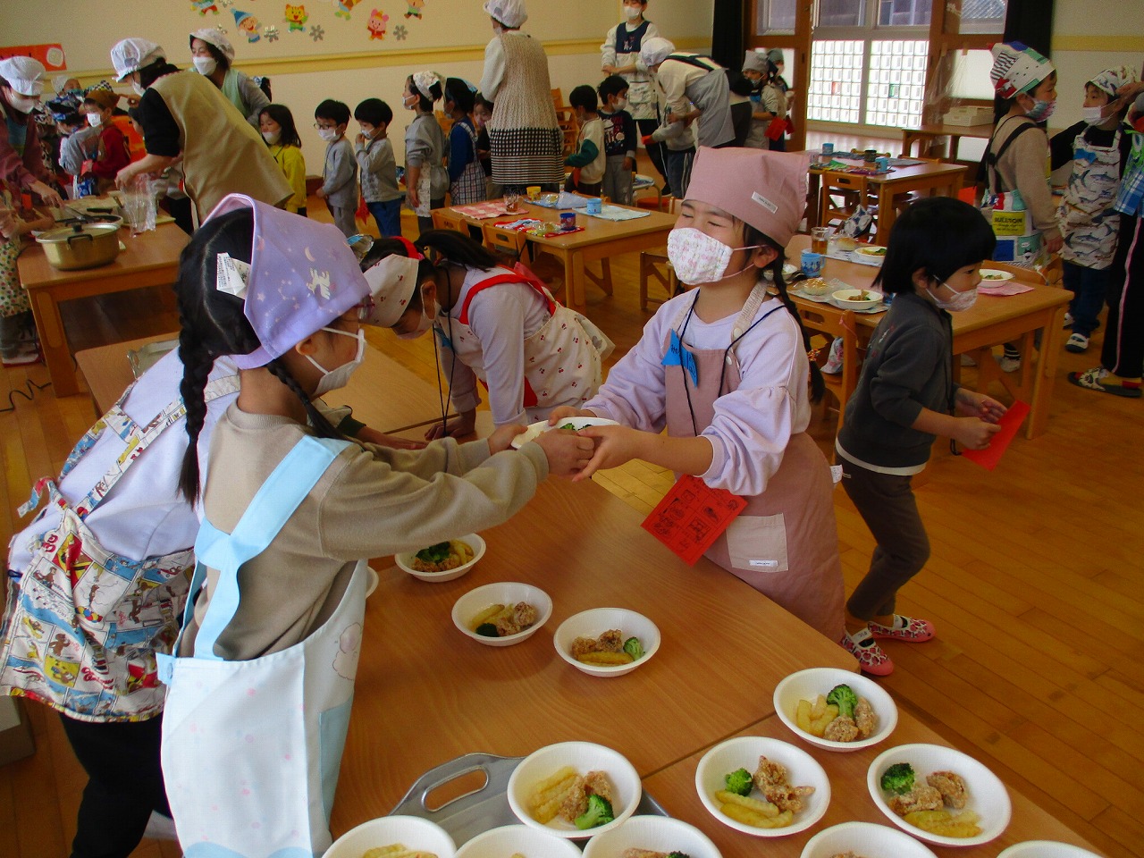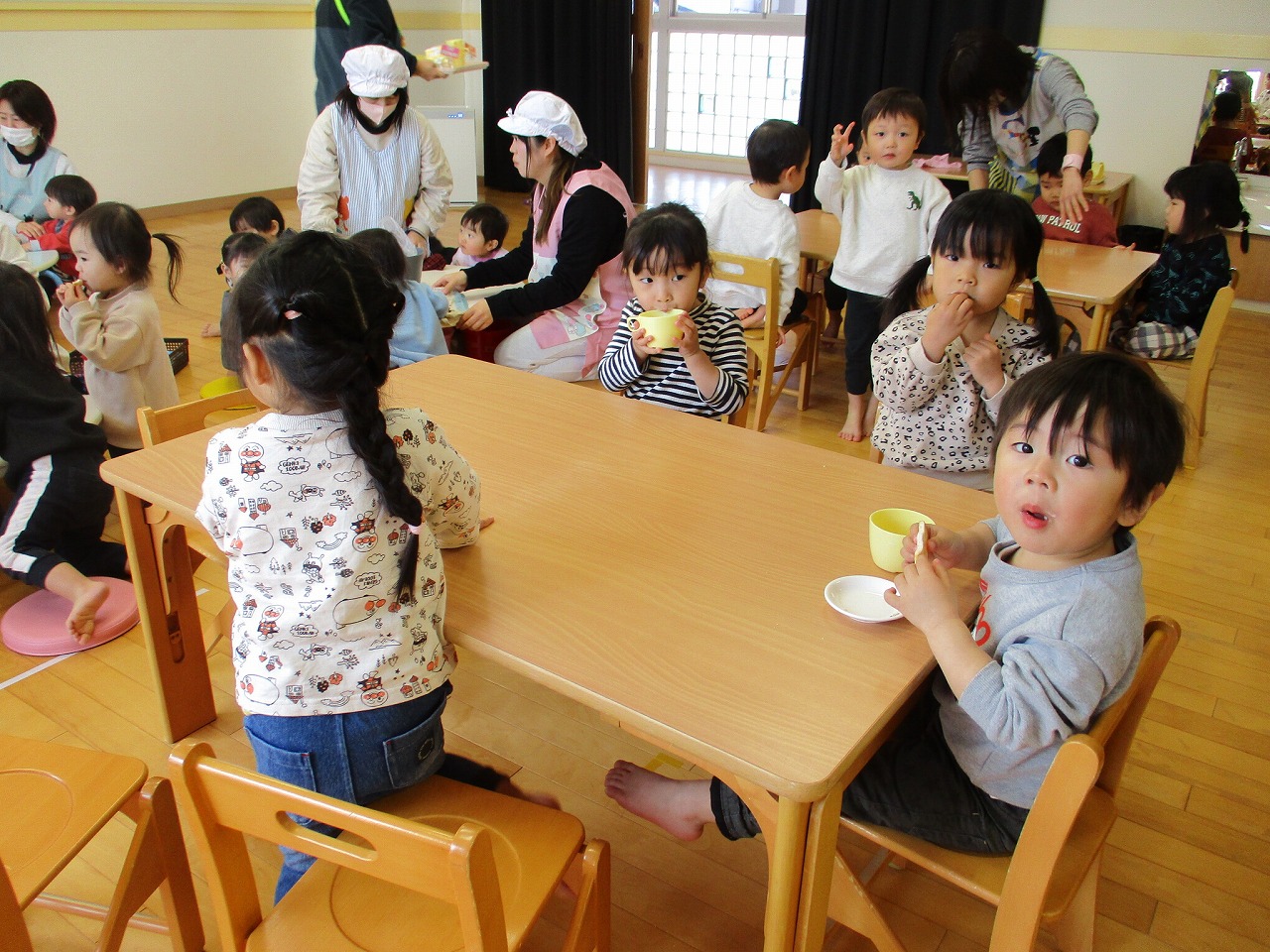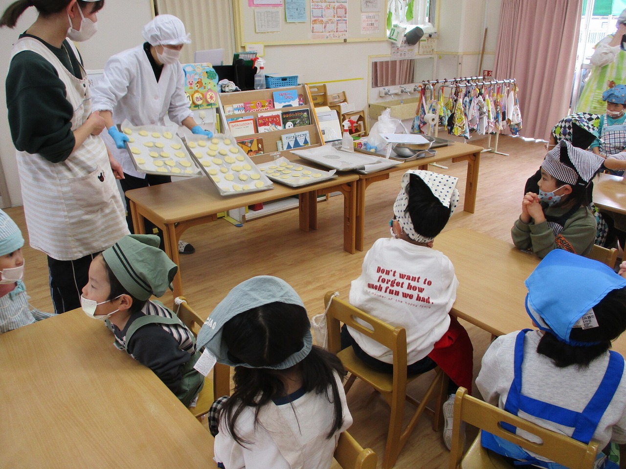 昼食の時に焼きあがったクッキーを5歳児クラスに持って行くとみんな喜んでくれました。お別れは寂しいけれど、お兄ちゃんお姉ちゃんとの思い出は宝物です。