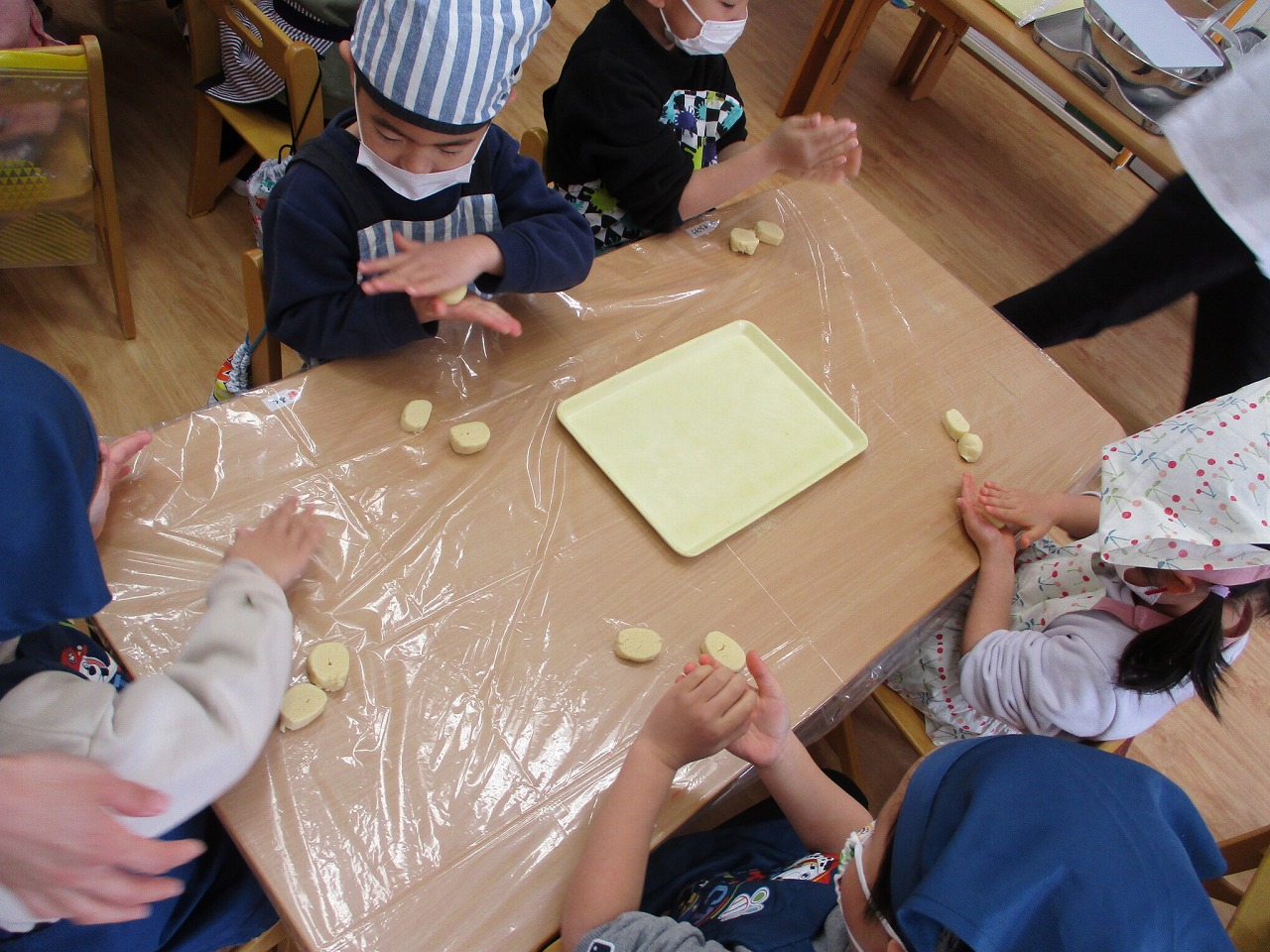 クッキングの前に粘土で練習したのでみんなコネコネ上手にできました。