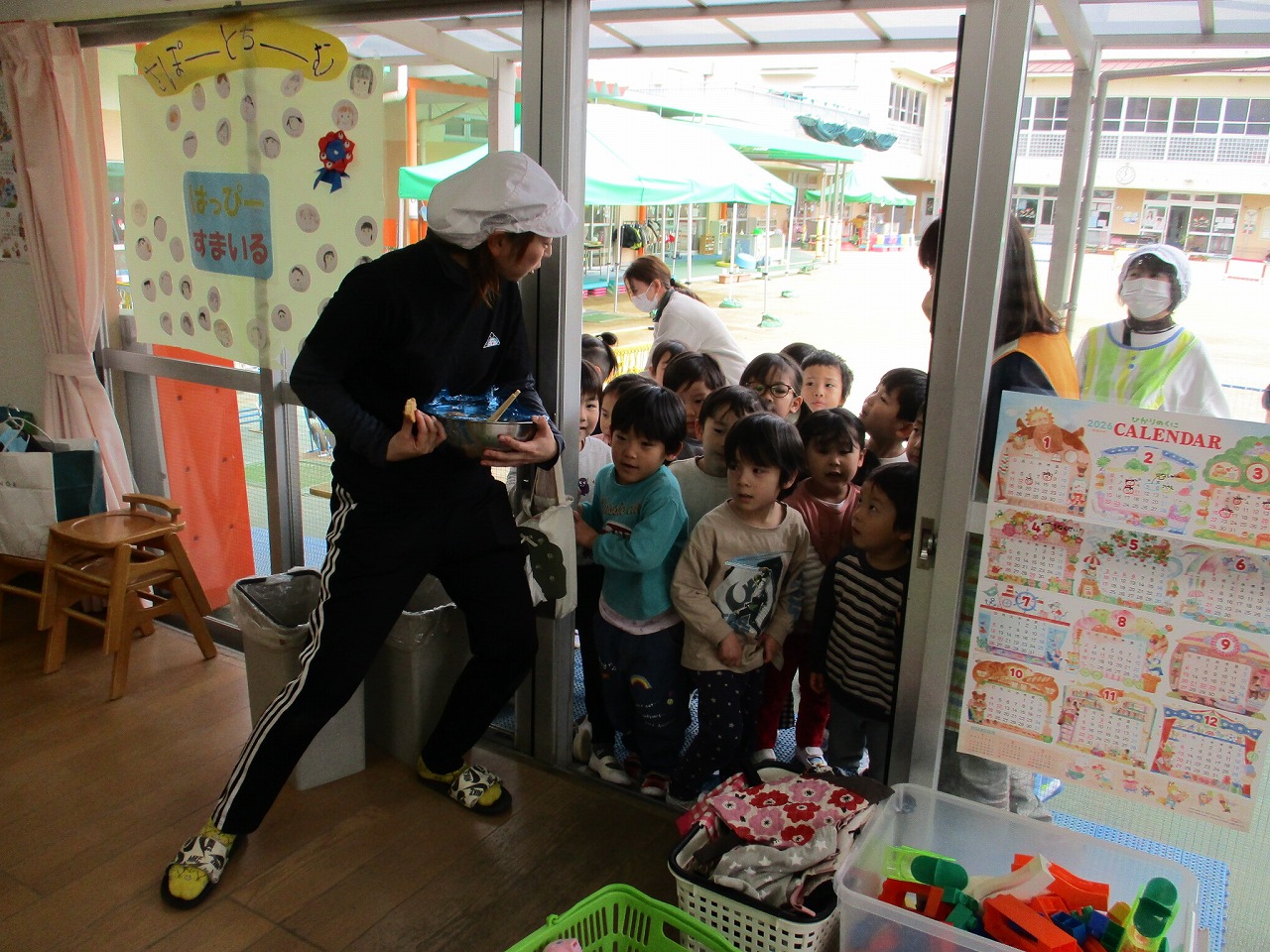 5歳児クラスに「クッキー食べてね」と持って行きました。