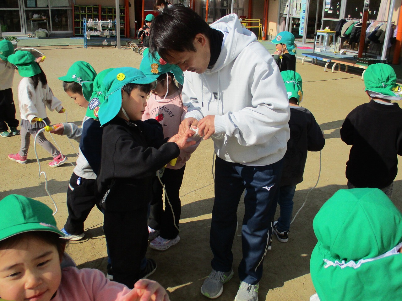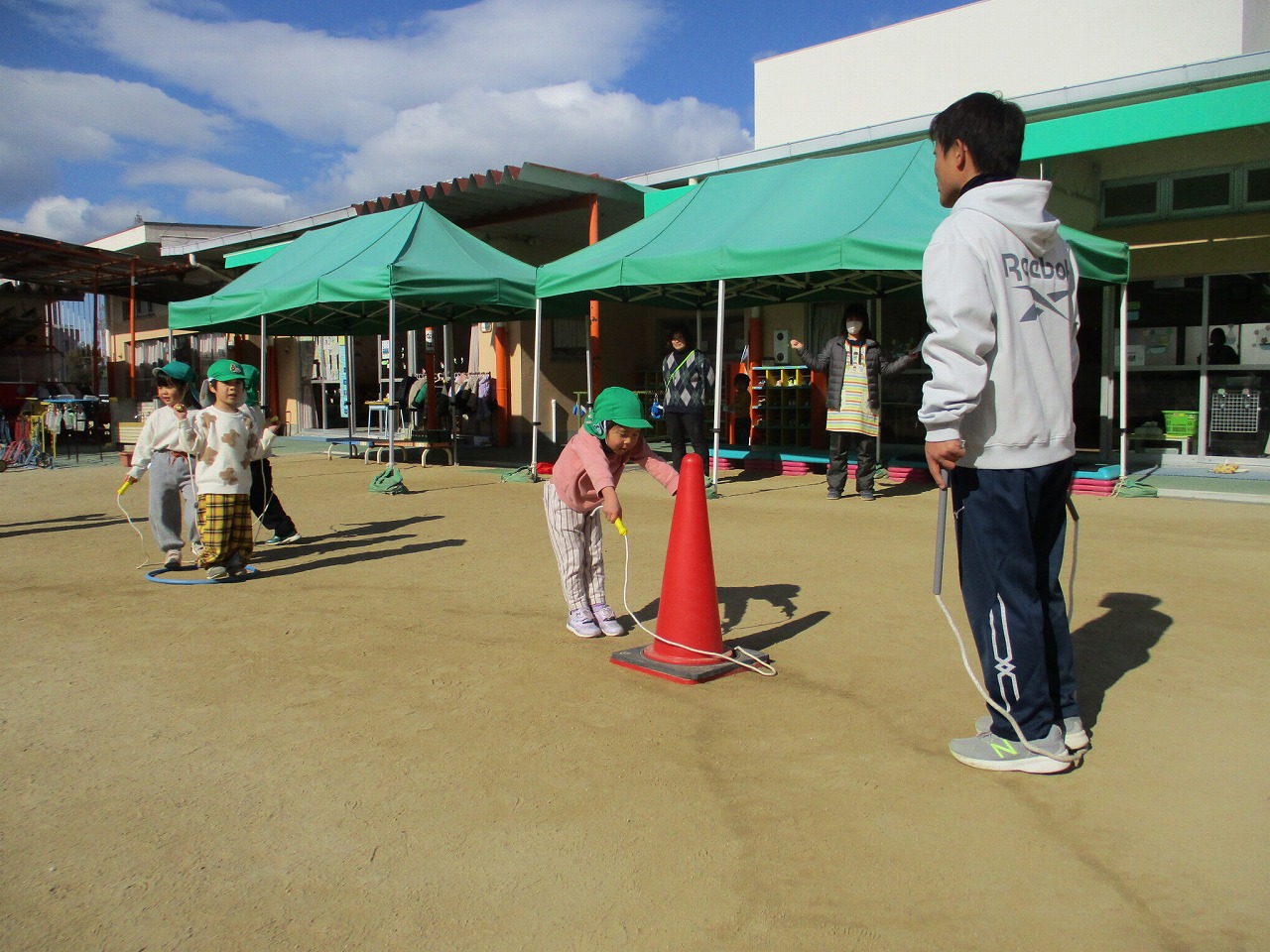 YTS運動遊びの講師を招き、2,3歳児クラスにはサーキット運動を、4歳児クラスには縄跳びを教えていただきました。