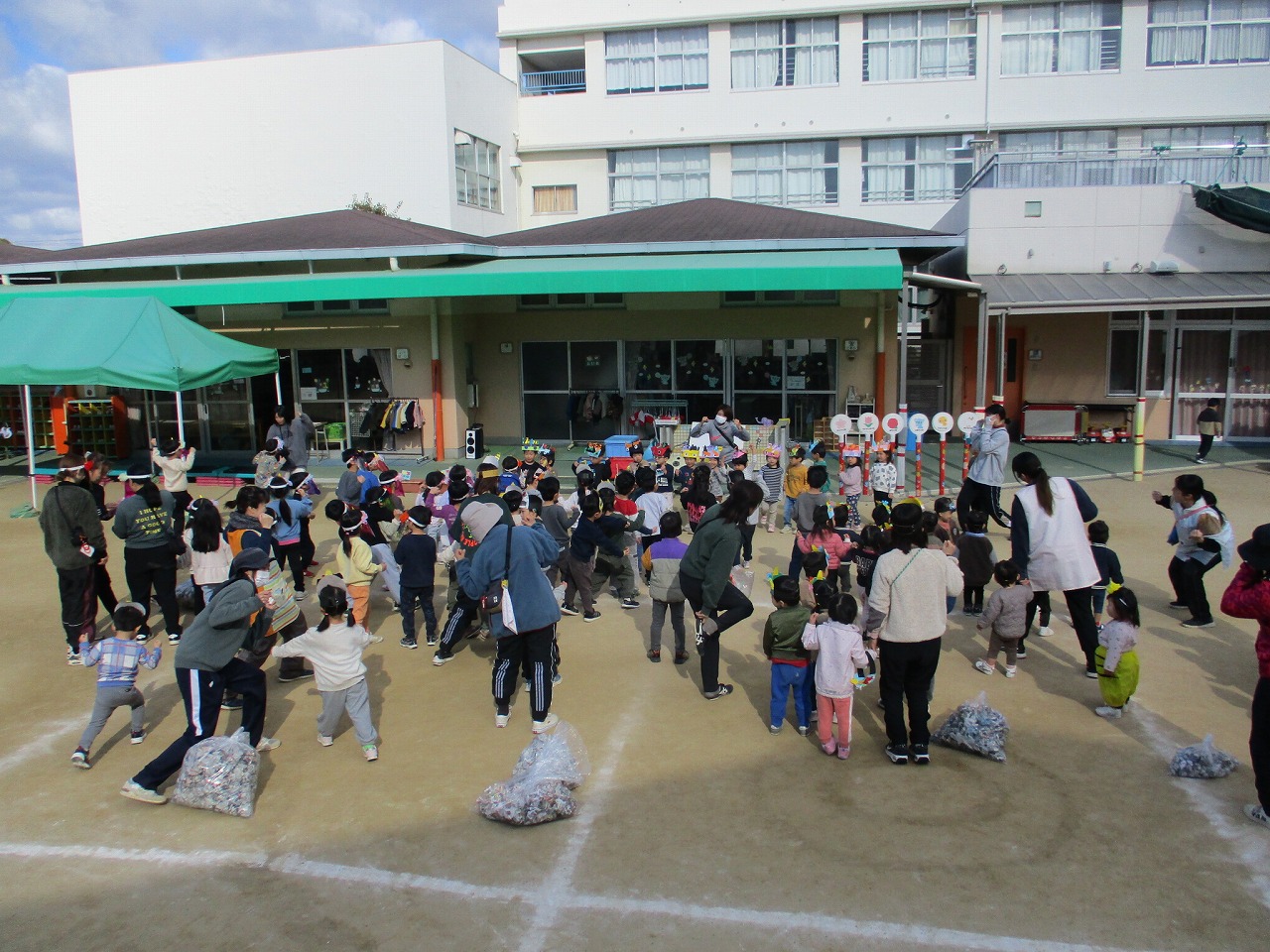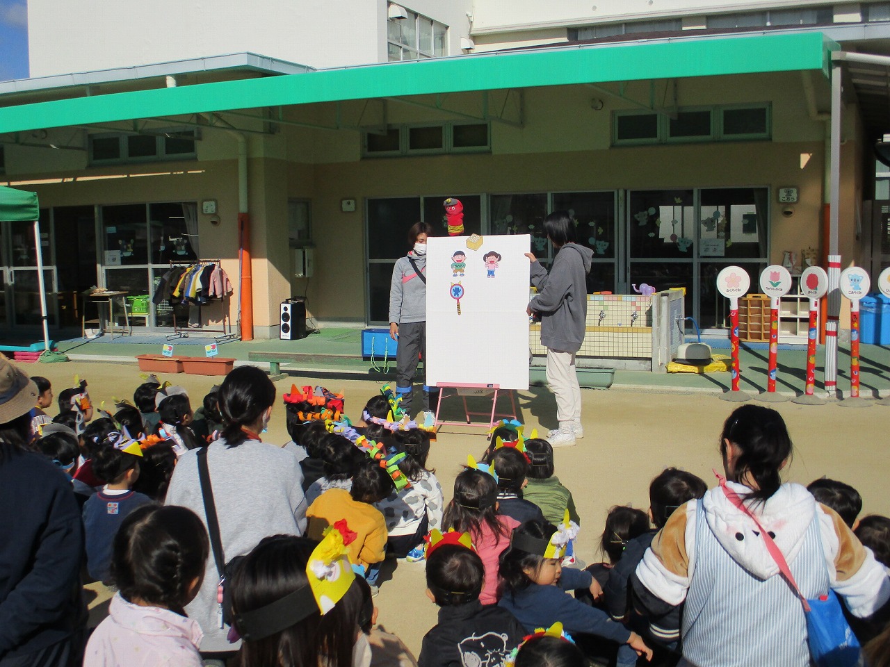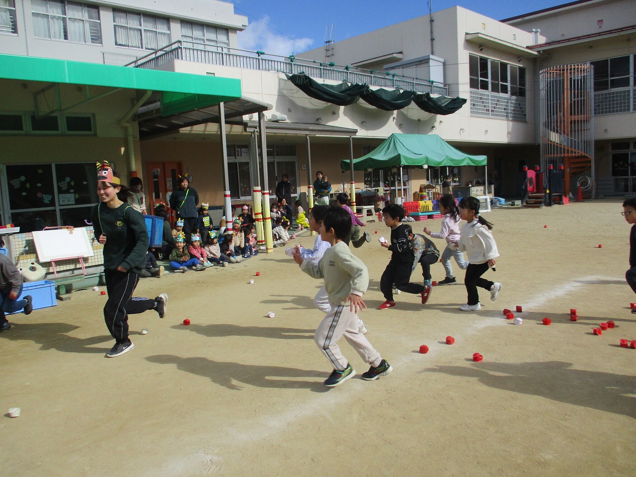 みんなで園庭に集まって節分の会を行いました。