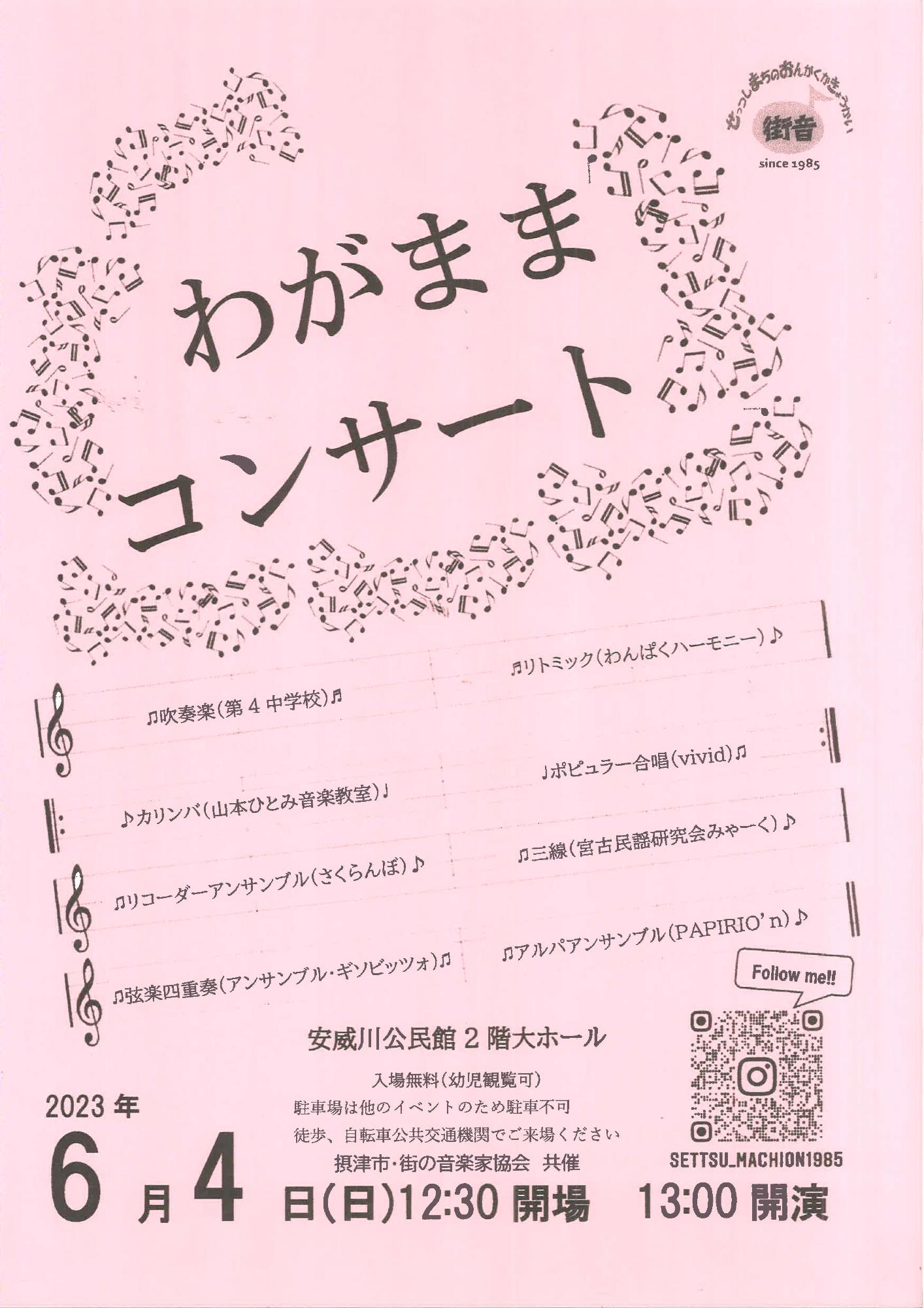 次回の「わがままコンサート」は、令和6年6月23日(日曜日)に、安威川公民館で予定しています。ぜひお越しください♪