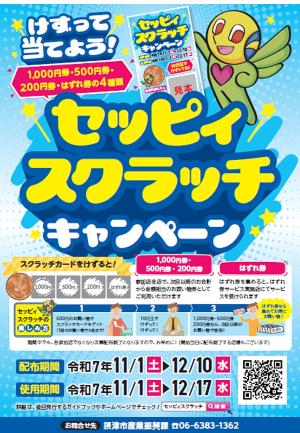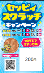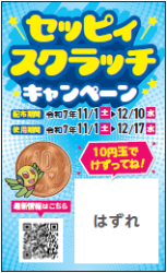 ※はずれ券サービスの利用条件や内容はお店ごとに異なります。詳細は、ガイドブック(市内公共施設や参加店で配布)またはセッピィスクラッチ公式ホームページをご覧ください。
