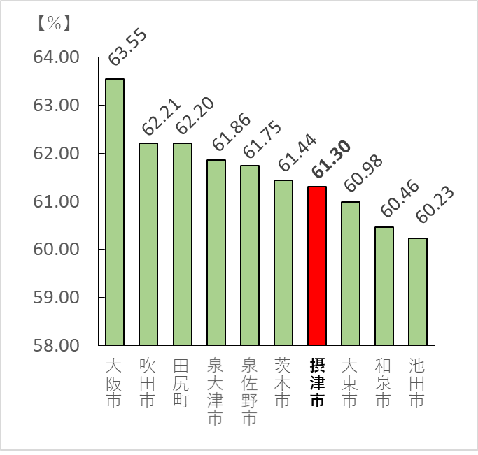 15~64歳人口の構成比は、府内7位でした。